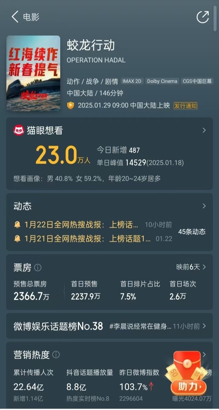 原来以为《蛟龙四肢》这续集,凭着前作的口碑和敕令力,能杀出一条血路,后果预售票房才2267.5万,这也太让东谈主不测了!