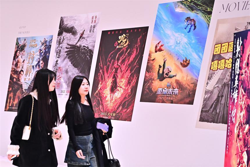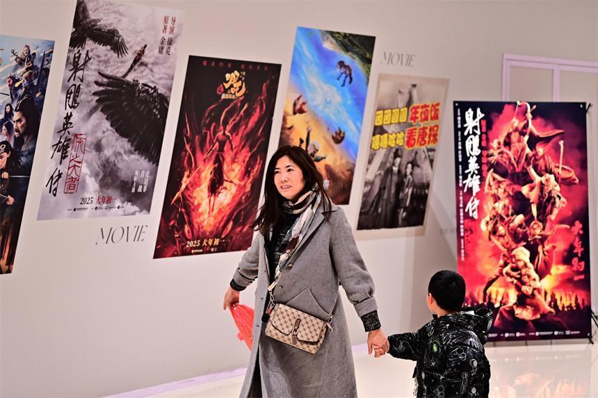赣州市章贡区的一家电影城,市民从春节档电影海报前走过。东说念主民网 朱海鹏摄
