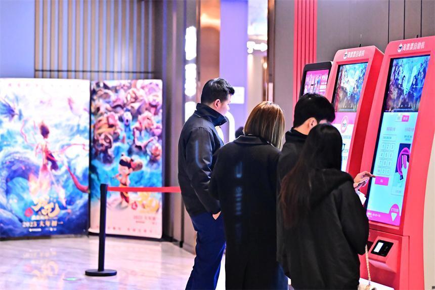 赣州市章贡区的一家电影城,市民在列队检票入场不雅看电影《哪吒之魔童闹海》。东说念主民网 朱海鹏摄