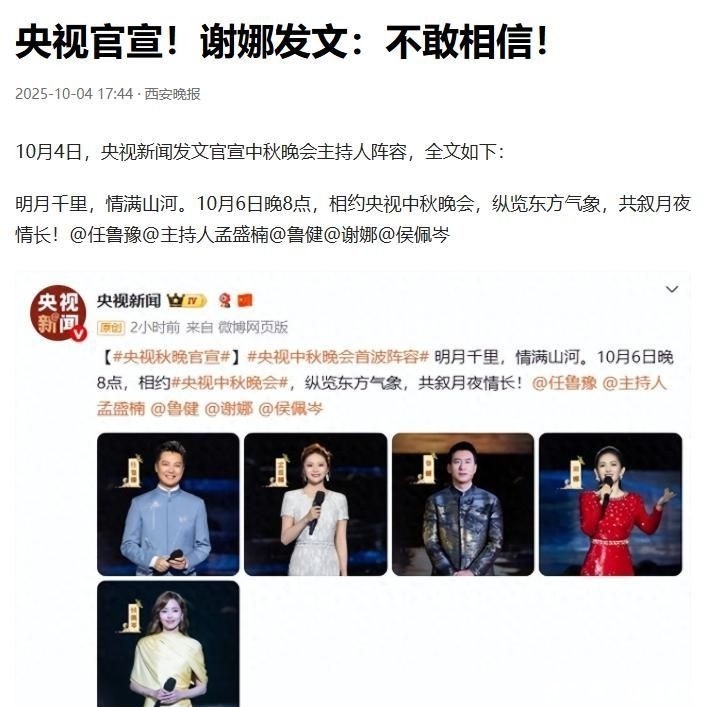 西安晚报—央视官宣!谢娜发文:不敢确信!