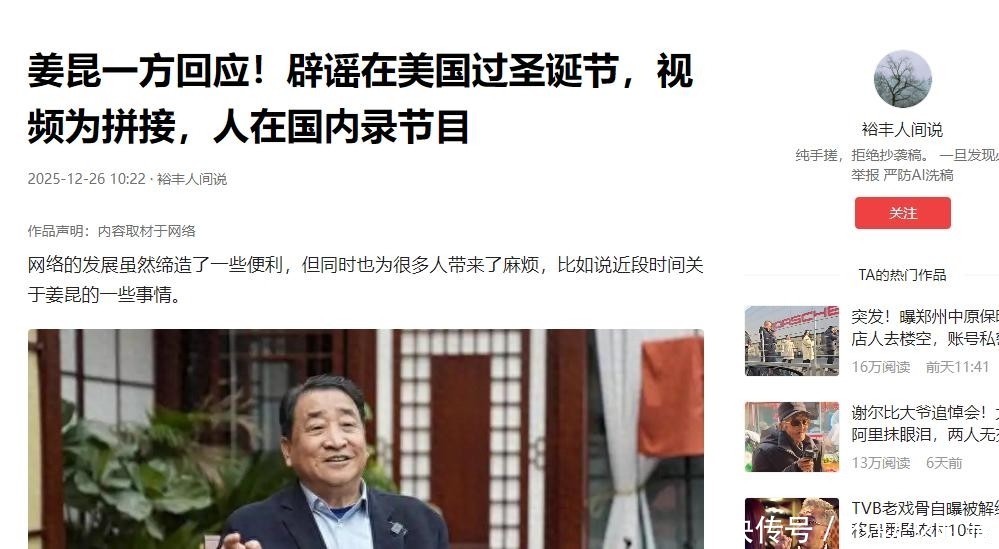 9. 12月25日,西方传统节日圣诞节本日,“姜昆在好意思国过圣诞”这一话题毫无预兆地冲上热搜榜首。
