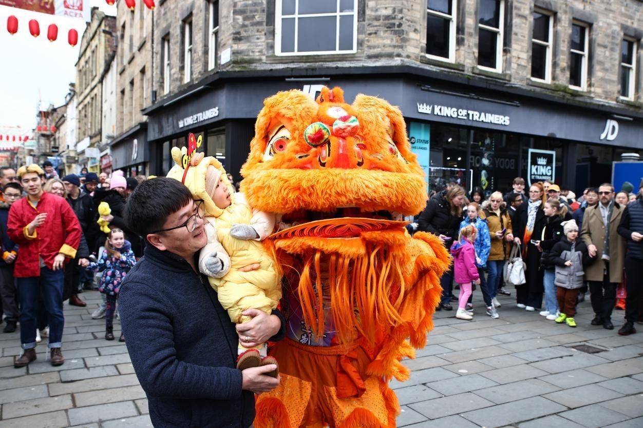 兰卡斯特中国新年仪式当作现场,舞龙与不雅众互动。摆布方供图