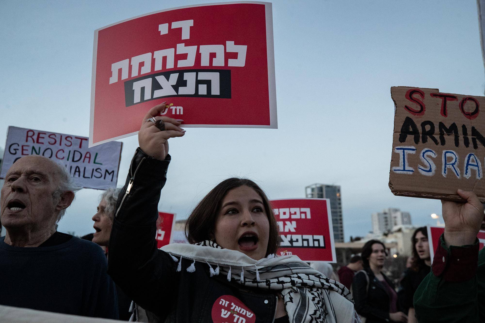 3月28日,在以色列特拉维夫一处广场,东谈主们手握口号插足反战集结。新华社记者陈君清摄另外,以色列犹太裔及阿拉伯裔环球对战事的不对也曾彰着。阿拉伯裔环球“有些”或“热烈”反对战事的比例从3月初的60%高潮至70%。