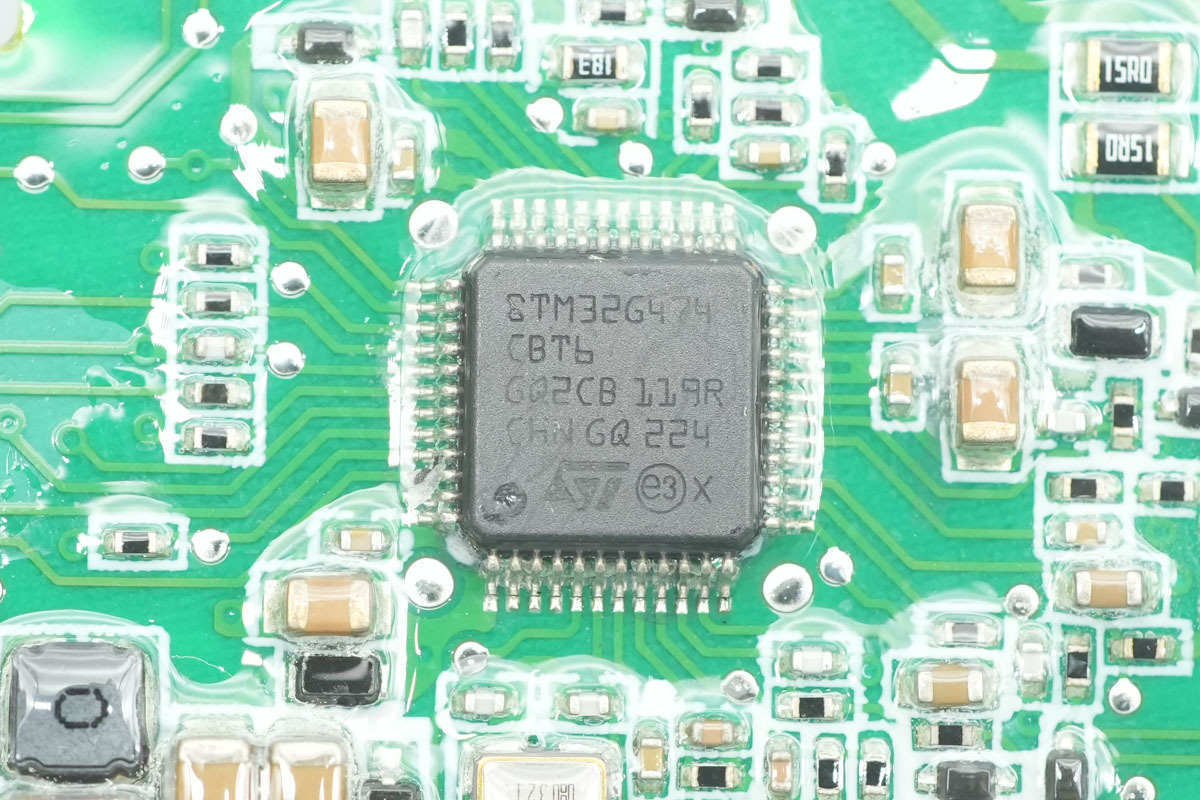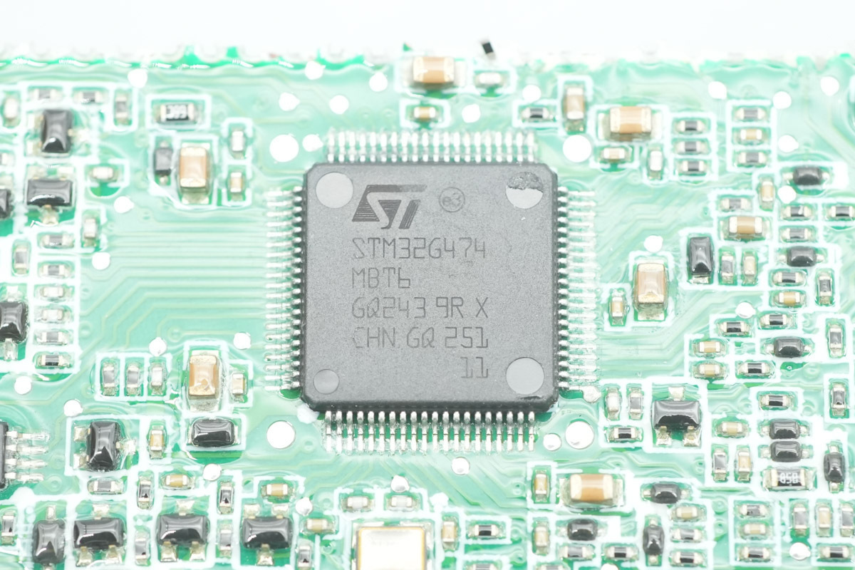 另一颗MCU来自意法半导体,型号STM32G474MBT6,用于LLC和同步整充军纵,还用于通讯落拓,选拔LQFP80封装。