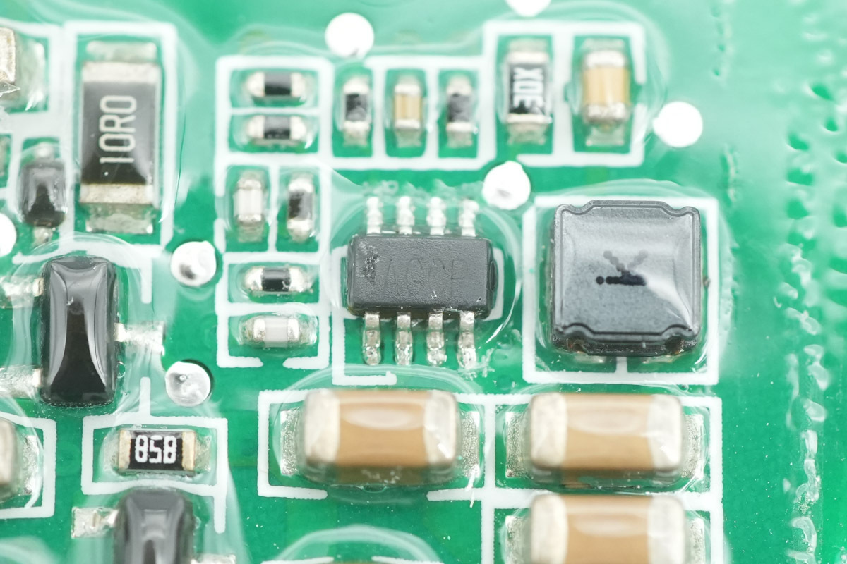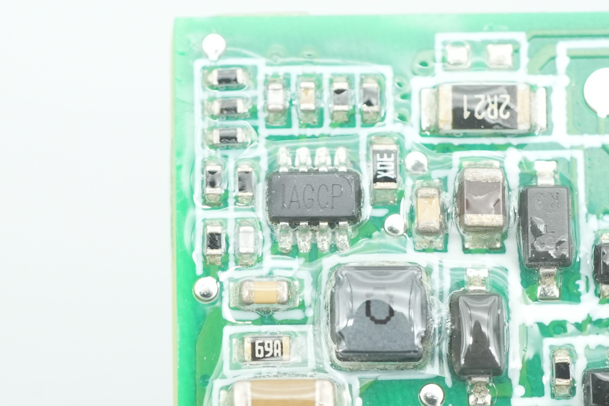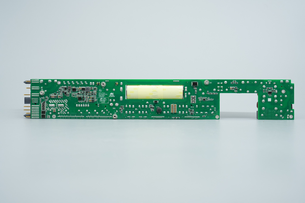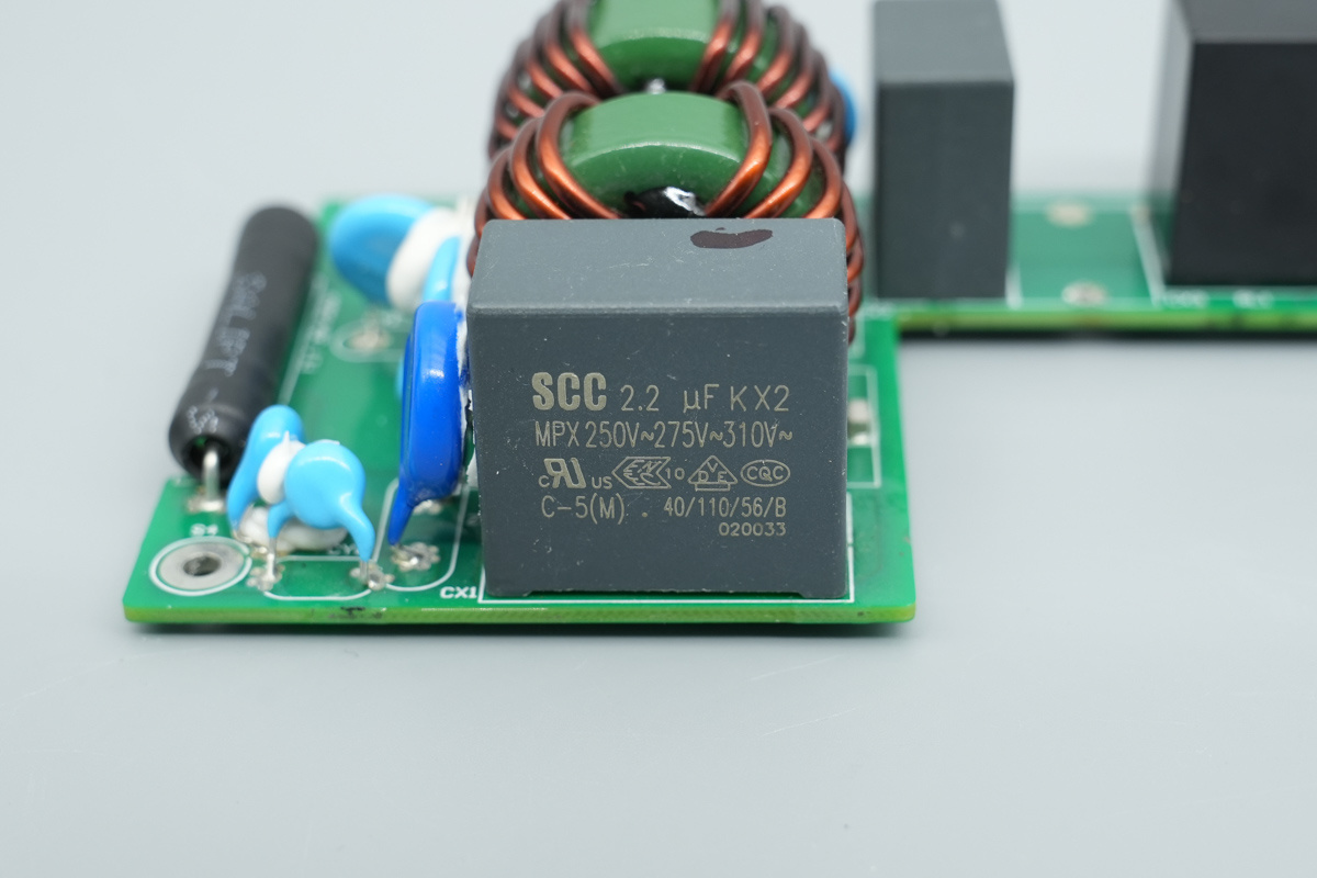 PCBA模块后面设有X电容放电芯片,运放,启动器和供电落拓管。PCB镂空放手高压滤波电容镌汰厚度。