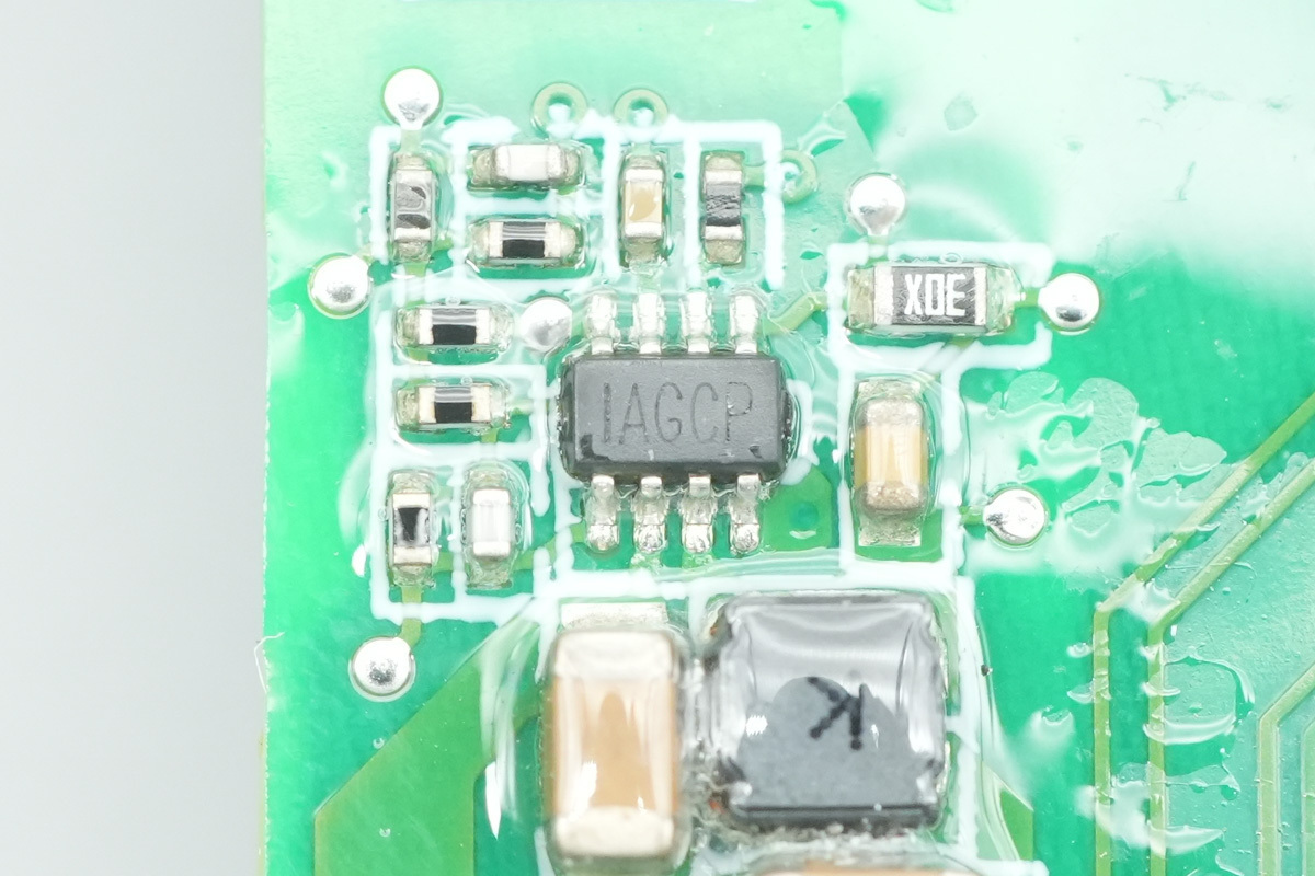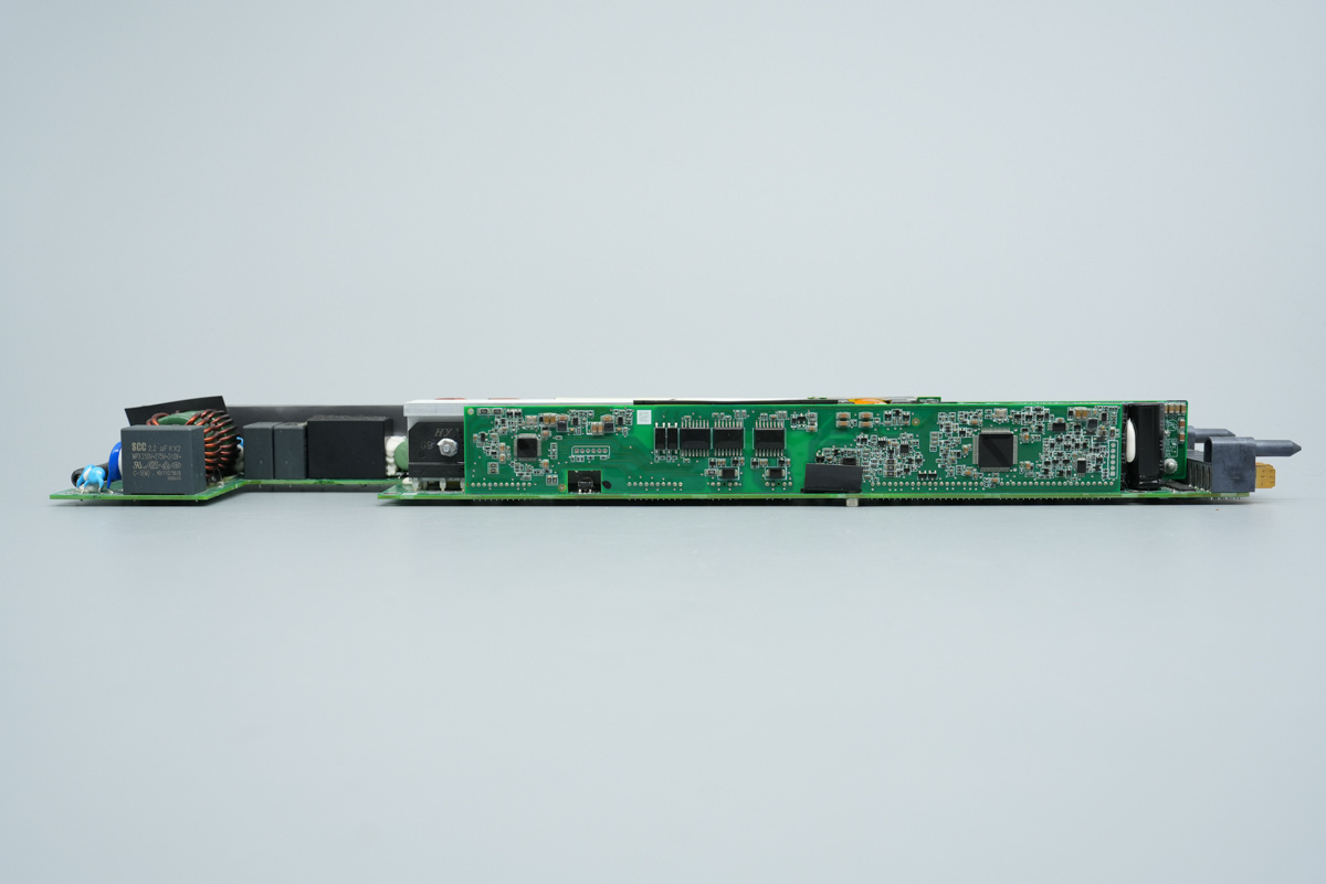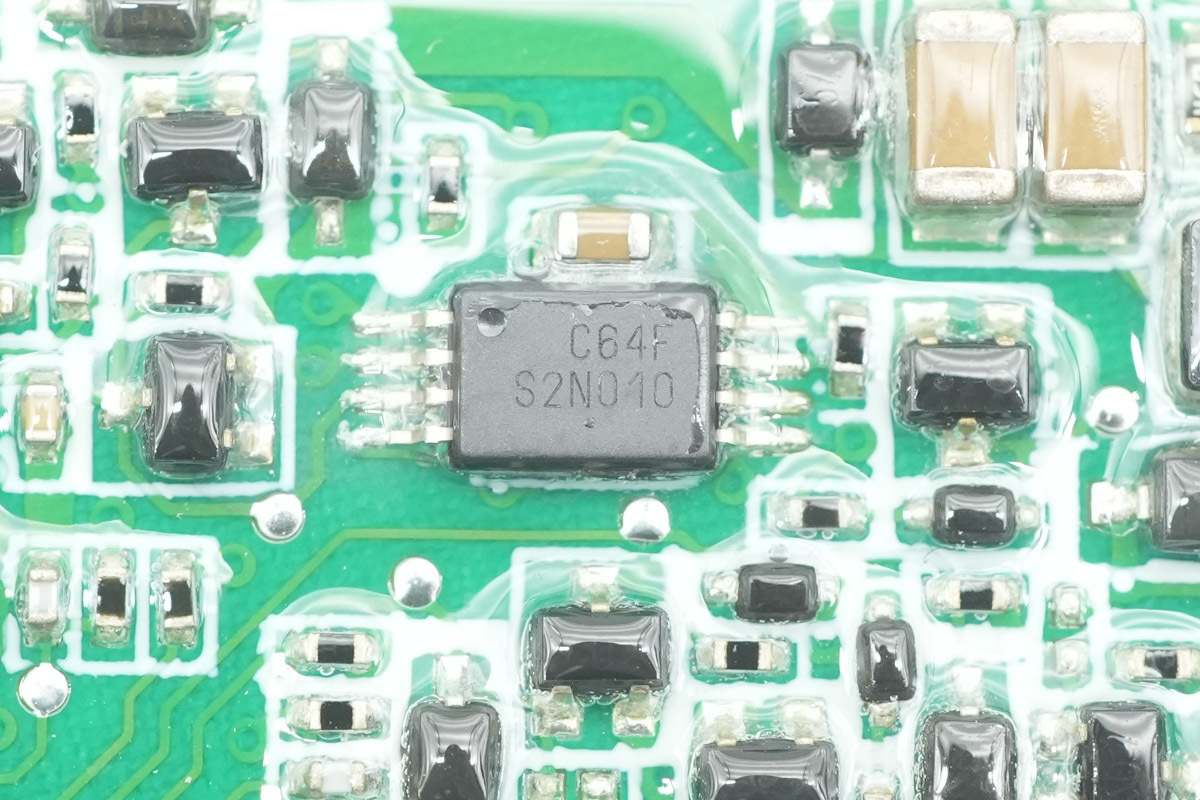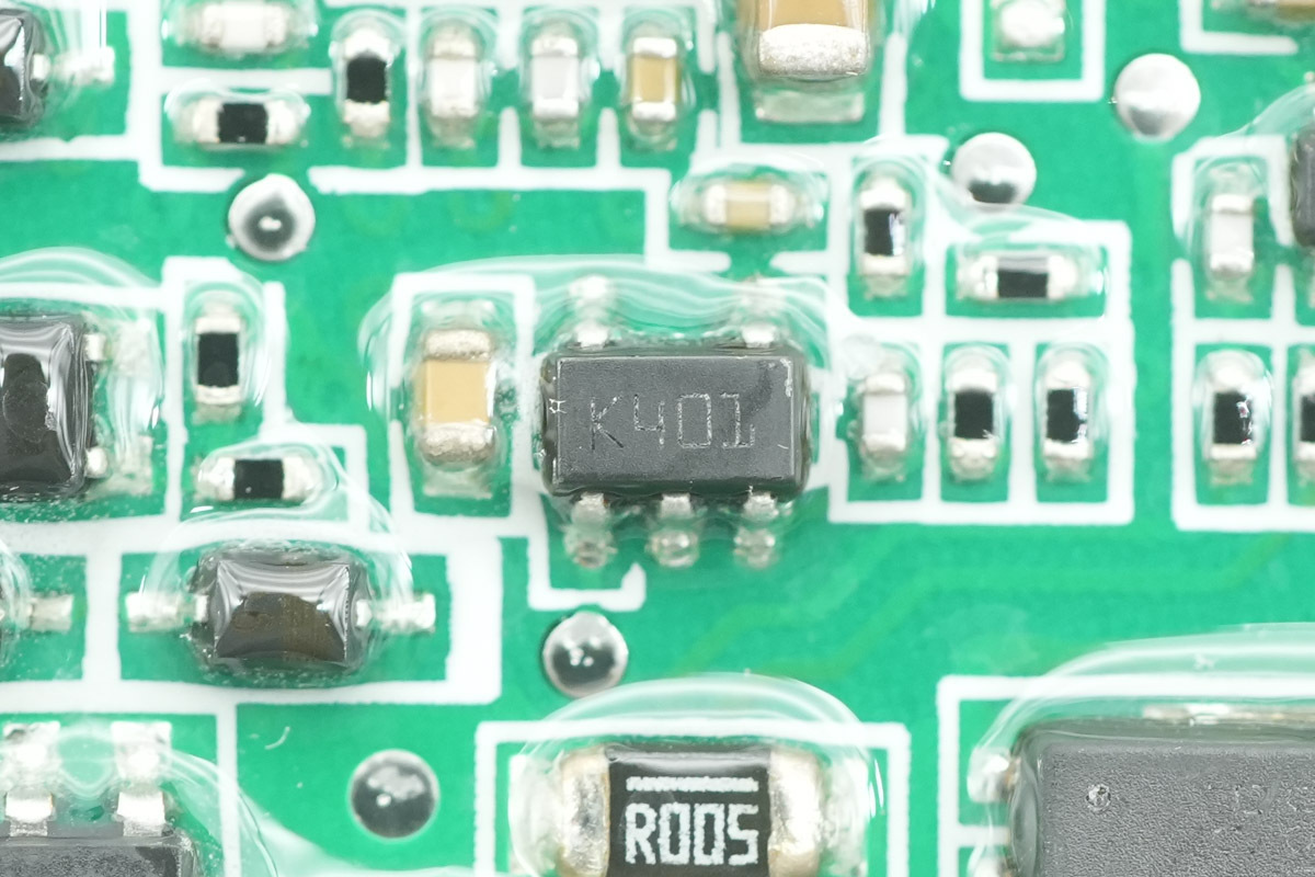 PCBA模块后面设有X电容放电芯片,运放,启动器和供电落拓管。PCB镂空放手高压滤波电容镌汰厚度。