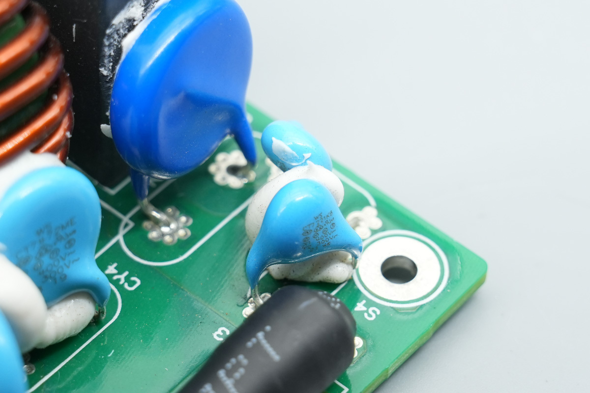 LLC谐振电容选拔NPO电容,焊合在垂直小板上,为13并联3串连结合。