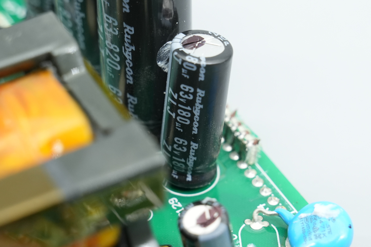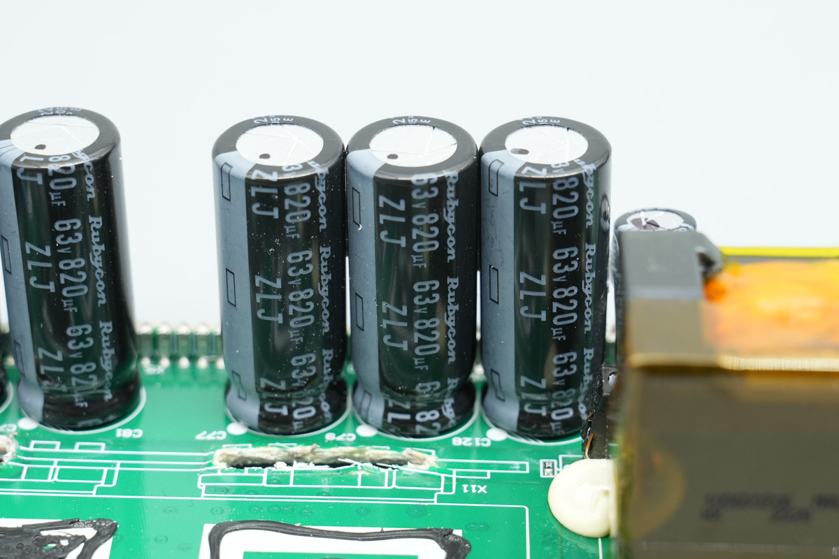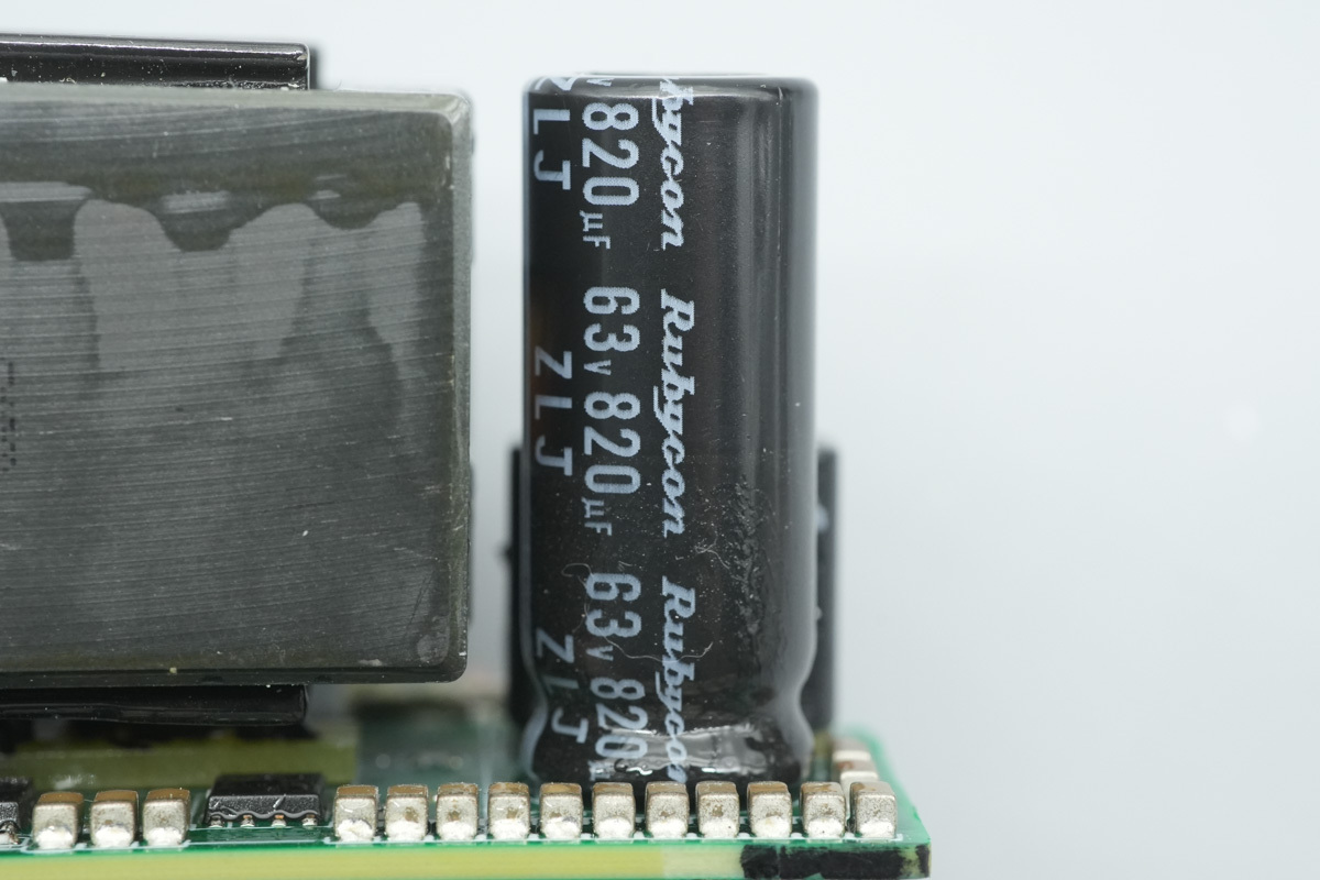 滤波电容来自红坚持,为ZLJ系列龟龄命电解电容,规格为63V820μF。