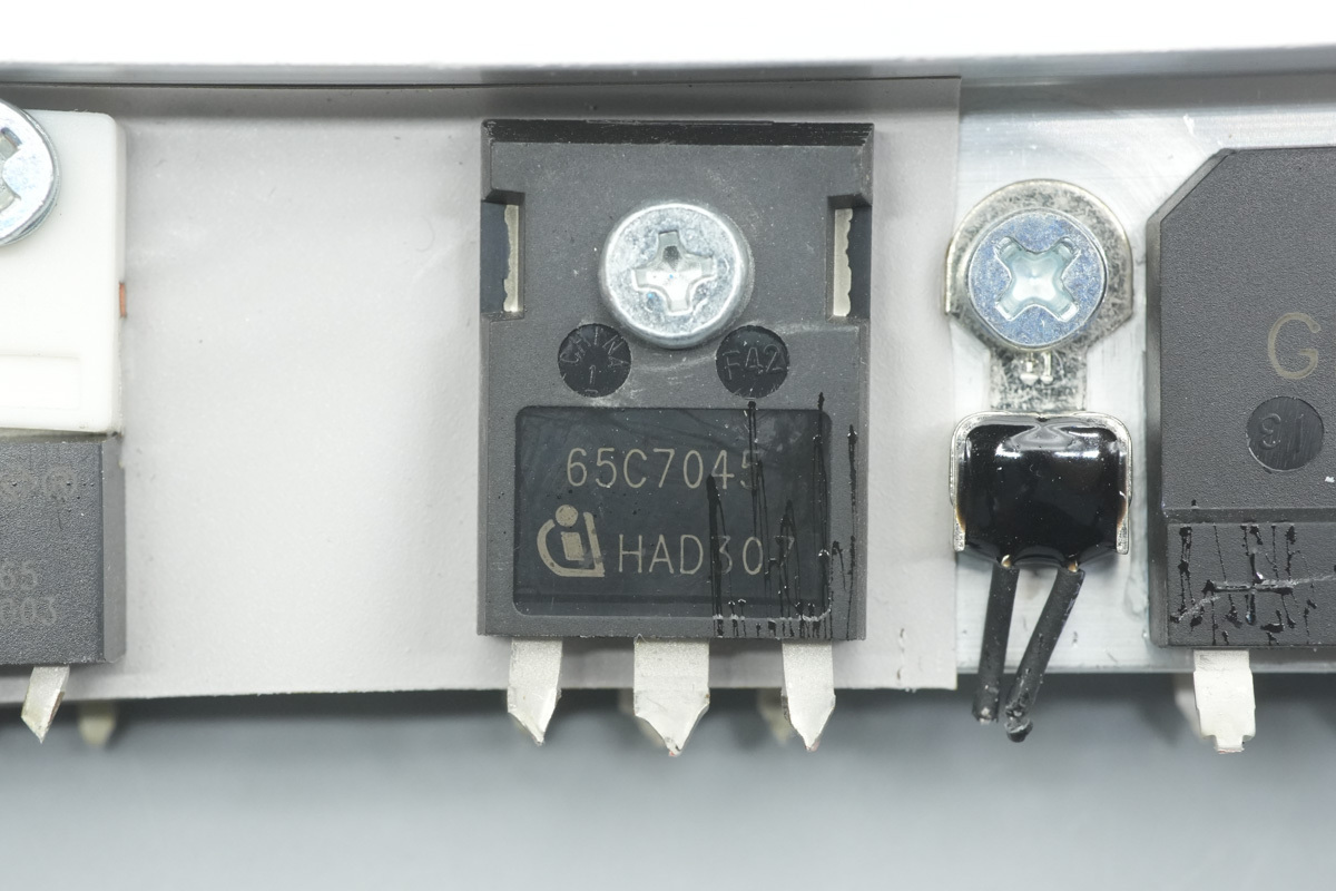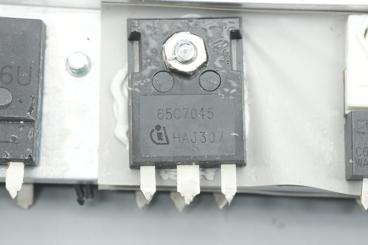 PFC开关管来自英飞凌,丝印65C7045,型号IPW65R045C7,NMOS,耐压700V,导阻45mΩ,选拔TO 247封装。