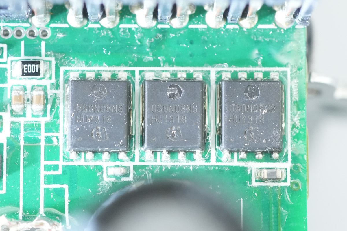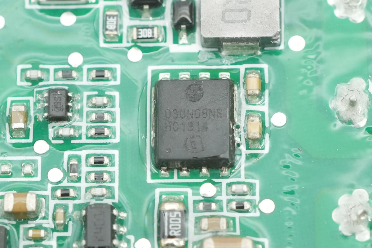 输出落拓管选拔英飞凌BSC030N08NS5,与同步整流管型号雷同。