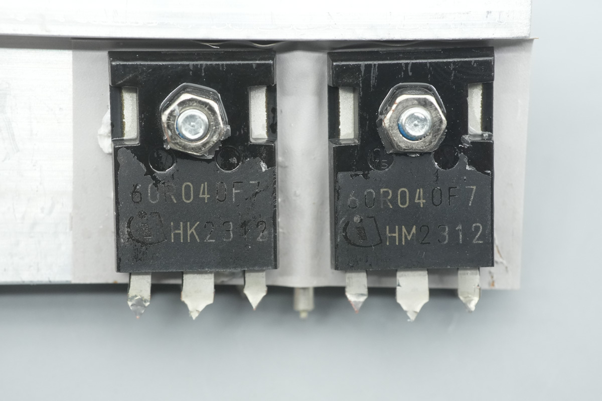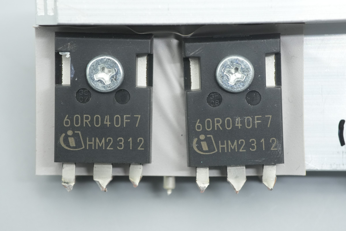 LLC开关管来自英飞凌,丝印60R040F7,型号IPW60R040CFD7,NMOS,耐压650V,导阻40mΩ,选拔TO 247-3封装。