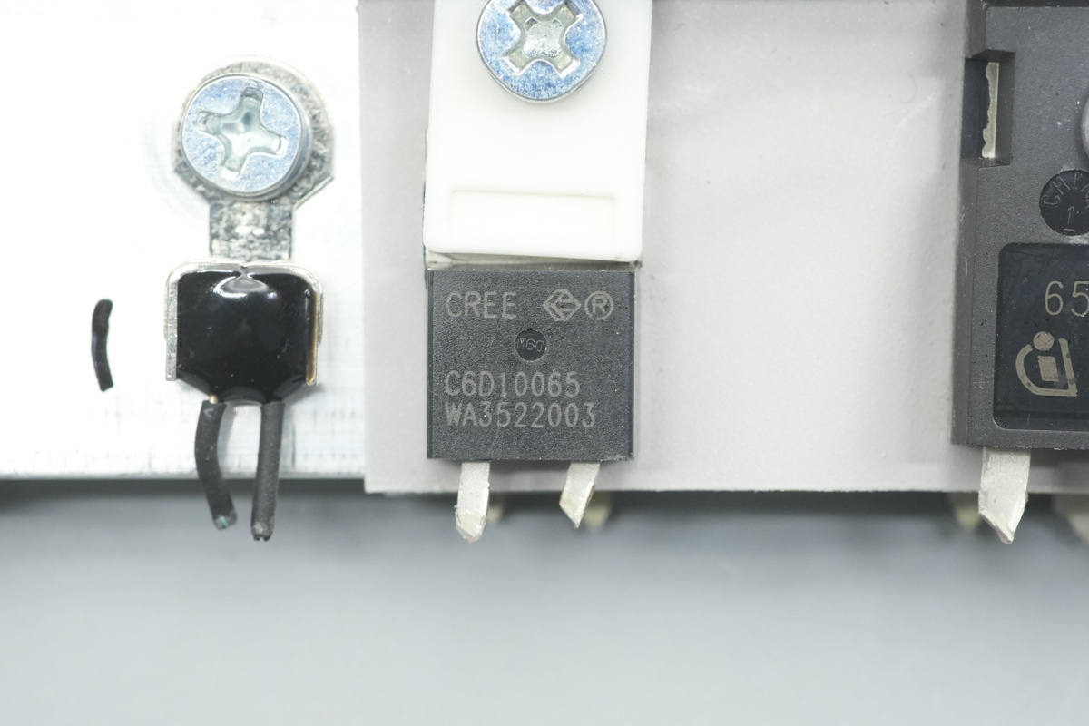 PFC整流管来自Wolfspeed,型号C6D10065A,为第六代碳化硅肖特基二极管,规格为650V 10A,选拔TO-220-2封装。