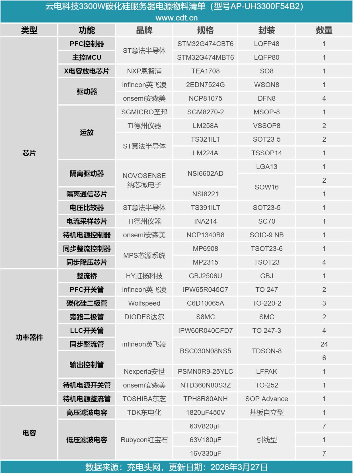终末附上云电科技3300W碳化硅工作器电源的中枢器件清单,便捷宇宙查阅。