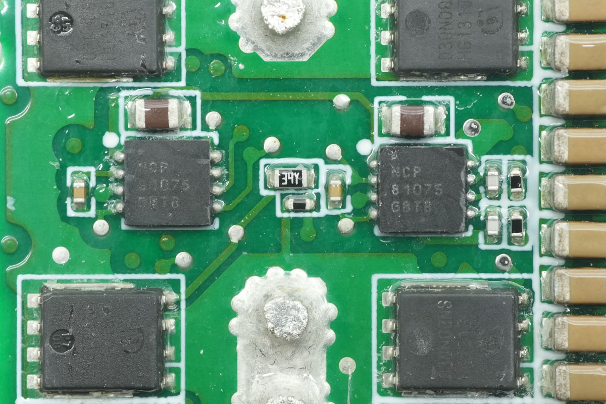 意法半导体STM32G474MBT6用于全桥LLC开云(中国)kaiyun网页版登录入口,同步整流和通讯落拓,使用纳芯微NSI6602AD隔断启动器进行LLC开关管和同步整流管启动。待机电源选拔安森好意思NCP1340B8落拓器,电容选拔日系东电化和红坚持品牌。PCBA模块涂有三防漆保护,电容和变压器等元件打胶加固,作念工用料塌实可靠。