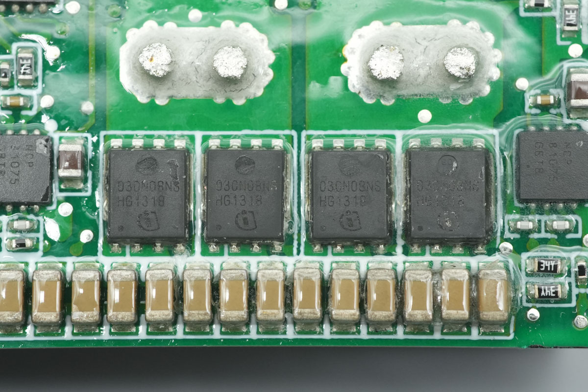 变压器下方的同步整流管型号雷同,共设有24颗。