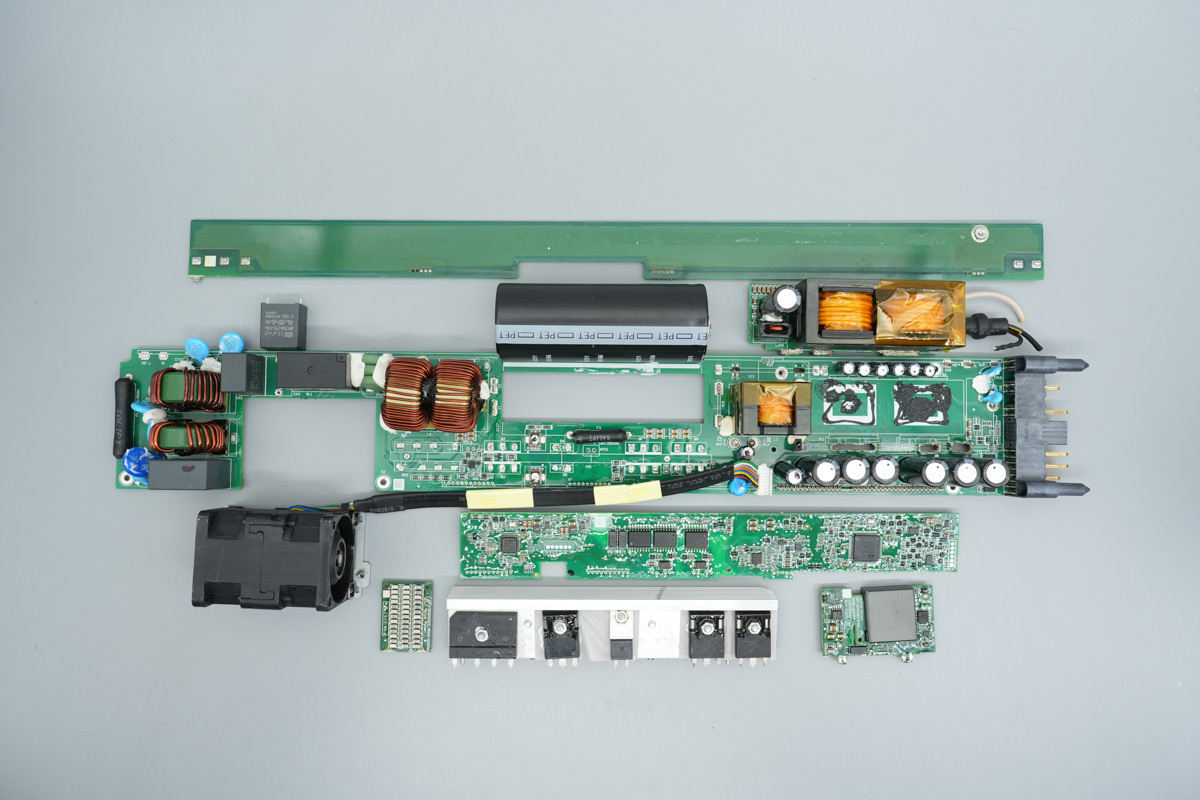 这款工作器电源选拔长条形机身,电源一侧设有安设提手和调换灯,另一侧设有结合器和留心格栅。电源里面选拔交错式PFC+全桥LLC+同步整流架构,使宅心法半导体落拓器,内置碳化硅二极管。底下就带来云电科技这款碳化硅工作器电源的拆解,沿路望望里面的有野心和用料。